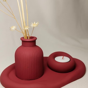 ARTESANY HOME Vase with Tray and Cement Candle Holder Pack – Handcrafted and Customizable | Romantic and Minimalist Decor
