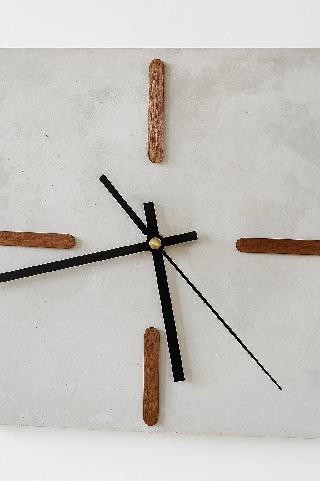 Handcrafted with a high-quality cement base and natural wood markers, this exclusive piece is handmade in Madrid, Spain. This clock combines warm and cool materials in a timeless design. Its metallic black hands provide contrast and sophistication, while its neutral-toned finish makes it easy to integrate into any decor style: Nordic, industrial, minimalist, or modern.