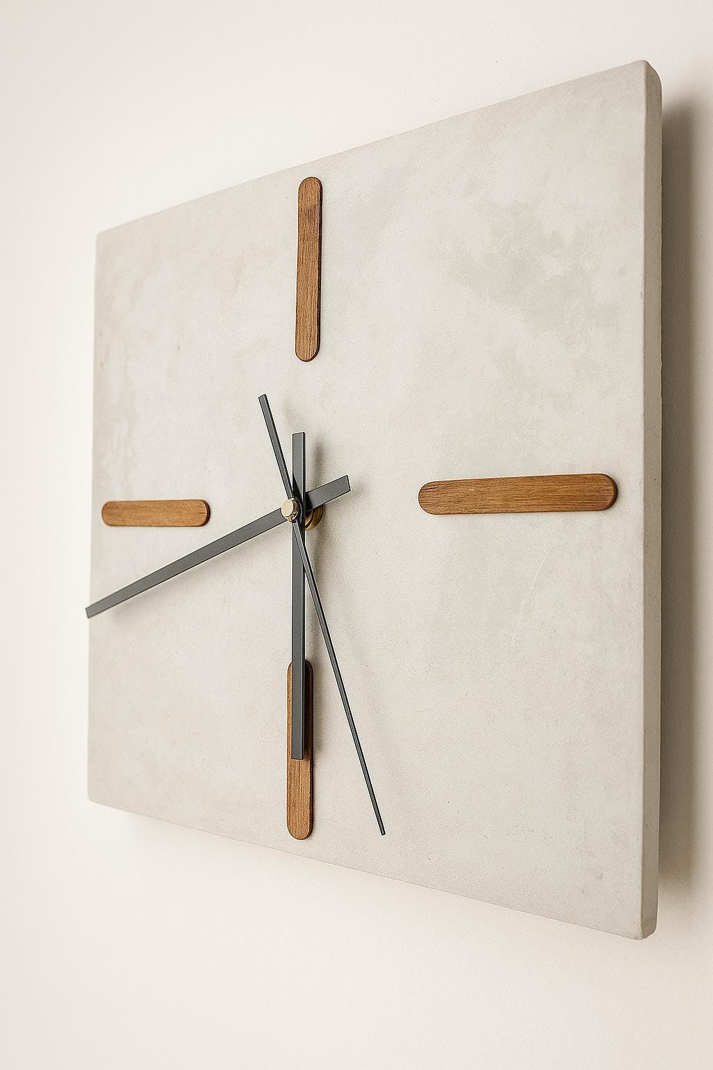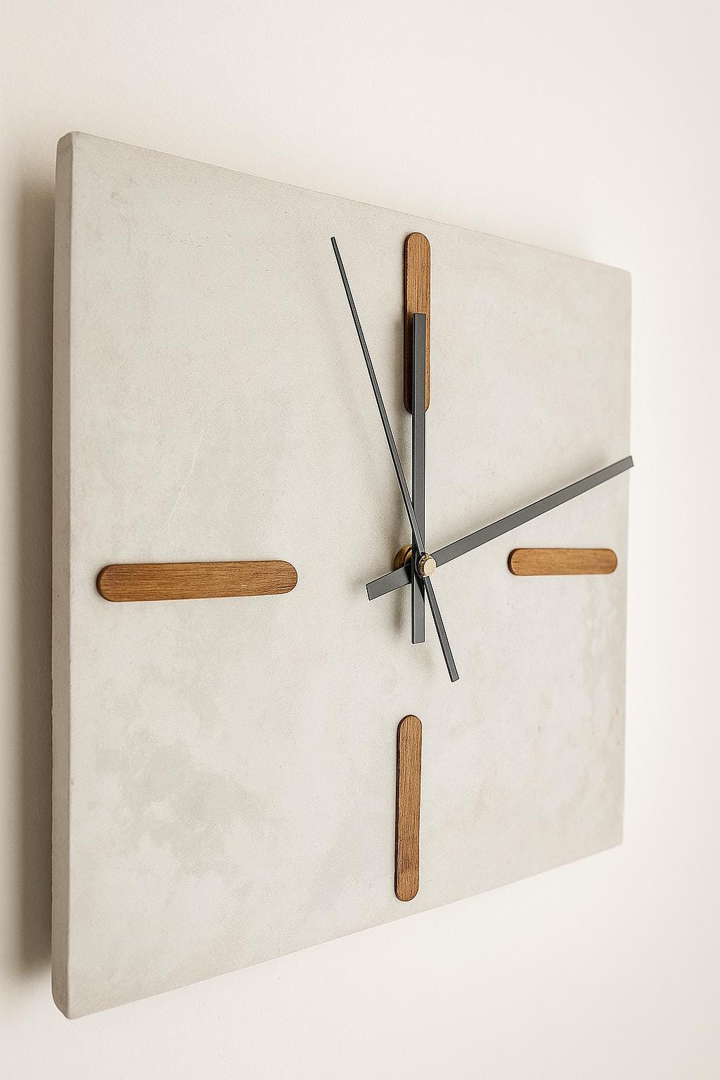 Add a unique and elegant touch to your home with this minimalist cement and wood wall clock, designed for those who love modern, handcrafted decor. Its clean, contemporary style makes it the perfect piece for your living room, kitchen, office, or bedroom.