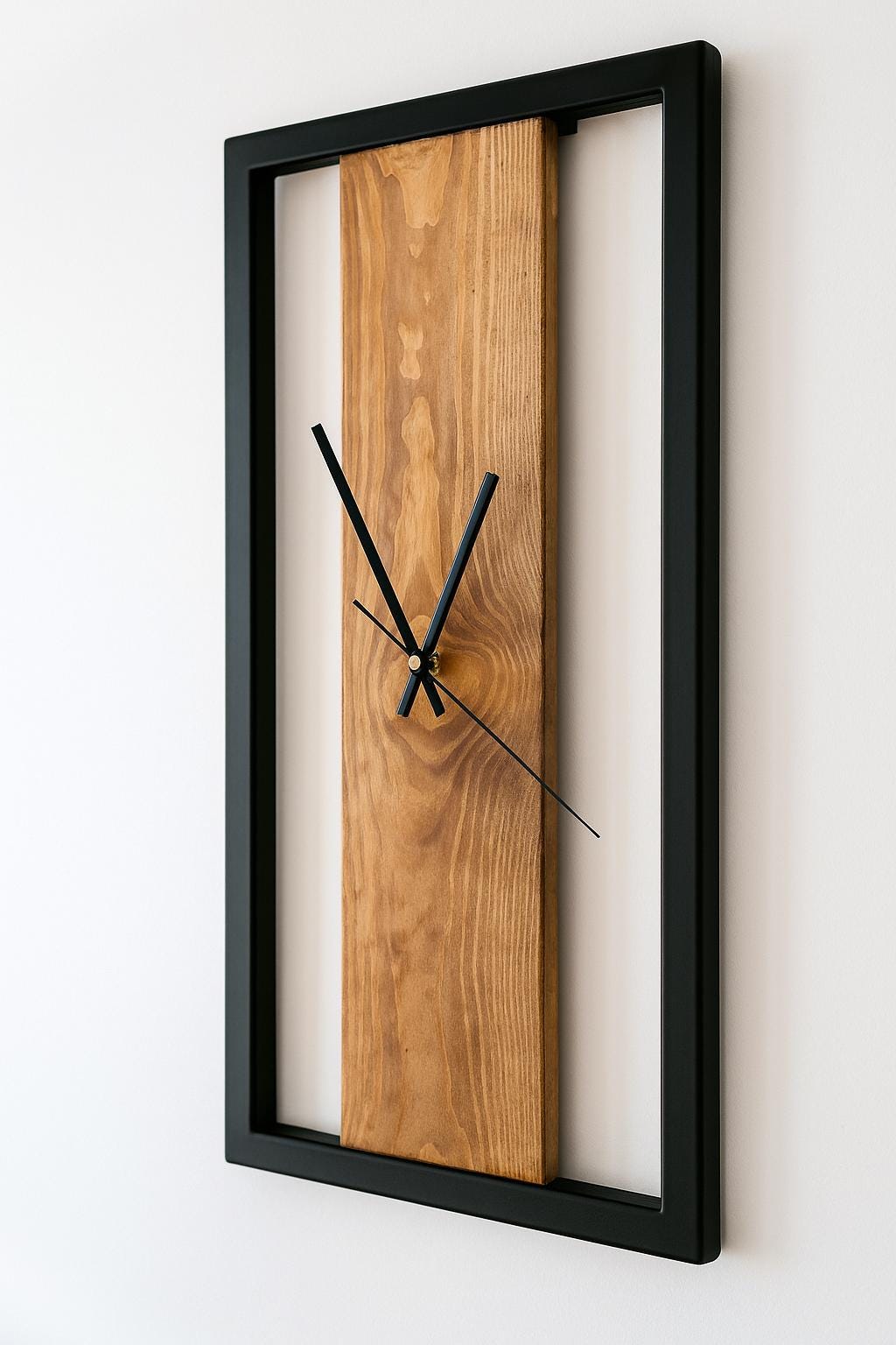 Give your home a sleek, contemporary look with this minimalist wood and metal wall clock, designed for those seeking a unique and sophisticated decorative accessory.